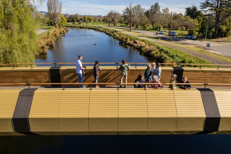 A bold creation by the Christchurch team at Isthmus, with Ruamoko Solutions designing the 2m deep continuous mass timber beams that provide structure for the bridge.