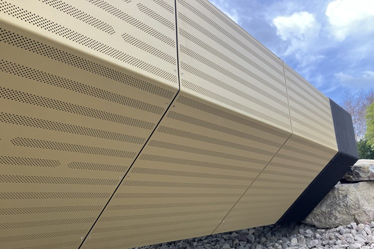 Coated with Dulux Electro anodised-look powders in Gold Pearl Kinetic and Dark Bronze Kinetic, this metallic effect cladding can change appearance with changing light, creating a striking effect.