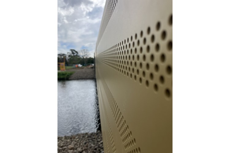 More than 100 golden perforated aluminium panels represent bundled raupō reeds, while the 40 dark bronze steel panels symbolise the flax bindings that hold them together. The timber guardrails are mounted with over 60 steel upstands.